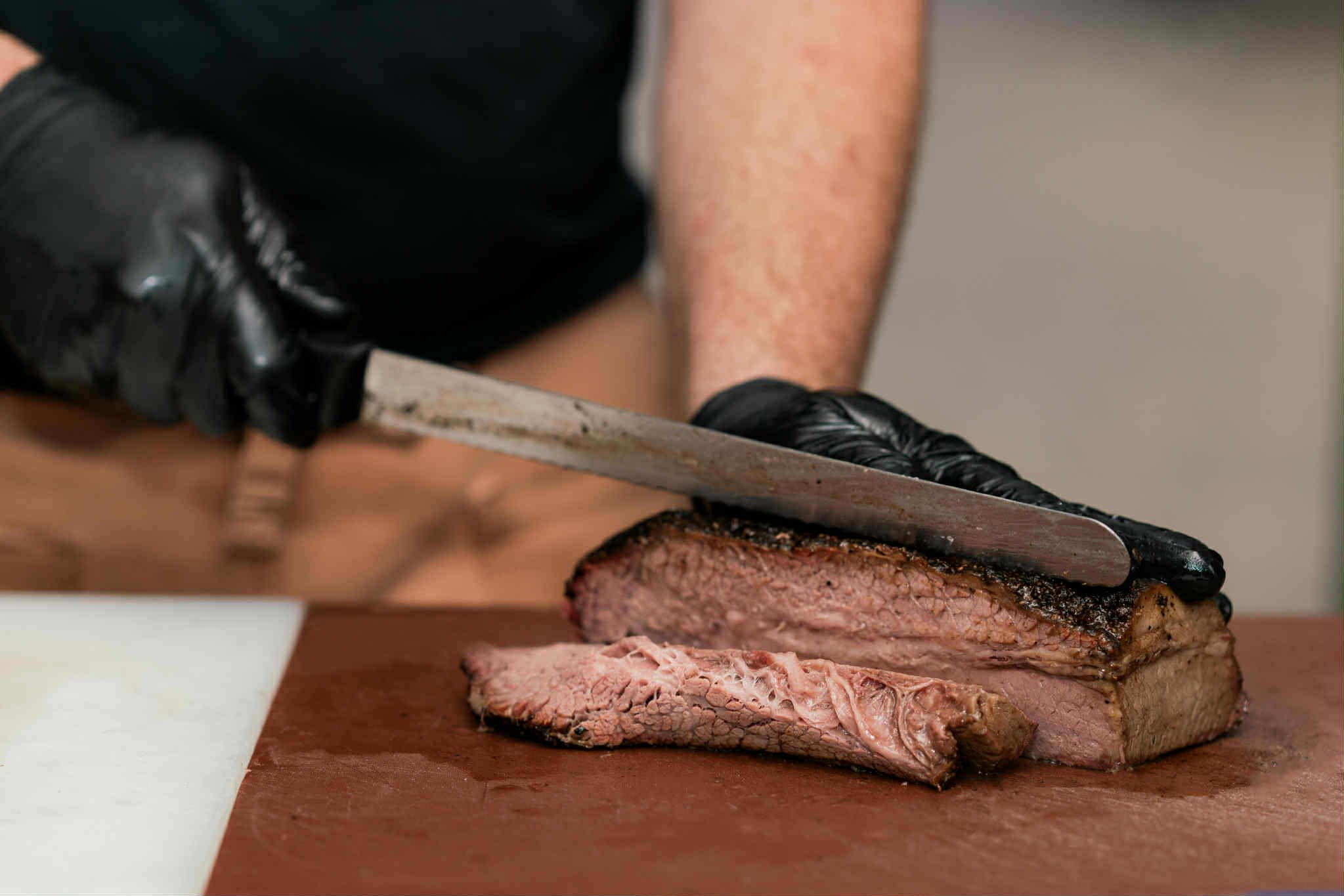 Barnett Angus Grass-fed in the lush pastures of Northern Tasmania. We choose Barnett for their superior marbling and robust beef flavour, which renders down perfectly during our long 14-hour smokes.